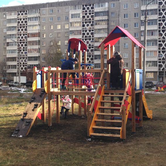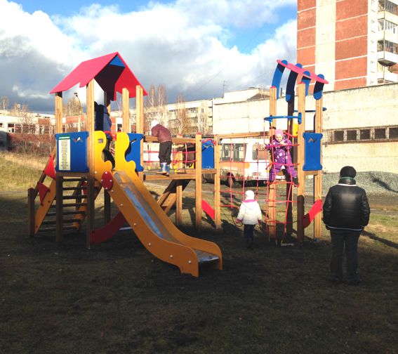 Городок для двора Трубников 36, на который мы собирали деньги всем миром - готов. Дети его облепили моментально)))