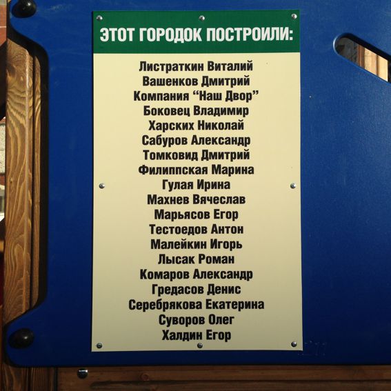 изготавливает эти замечательные городки. По традиции, на городке сделана табличка с фамилиями жертвователей: