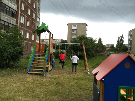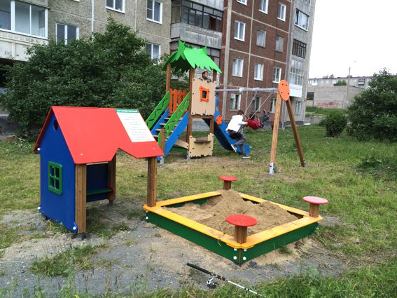 Закончен седьмой по счету детский городок по адресу Комсомольская 19в. Этот двор находится недалеко от двора по Комсомольской 17 – там с октября прошлого года стоит игровой комплекс от "Первоуральцев". Поэтому мы постарались подобрать такой набор элементов детского городка, чтобы они с уже имеющимся дополняли друг друга.