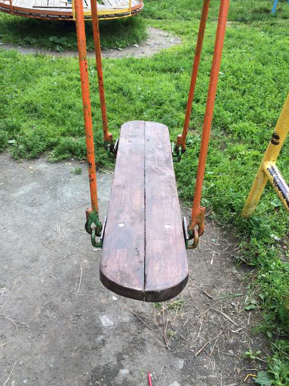 Кстати, о качелях. Когда ставили двенадцатый детский городок на Трактовой 35, я пообещал, что восстановлю сломанные качели. И вот, пожалуйста. Качели сделаны - всё качается как и должно быть)