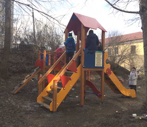 И просто финальный штрих. После установки я всегда приезжаю в подопечный двор, чтобы осмотреть комплекс. И вот приехал, стою, смотрю, фоткаю. Мимо идет тетенька.