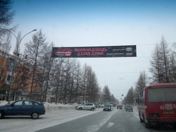 Рекламных растяжек, кстати, заметил в Асбесте ровно две, и обе про телеканал "Дождь".