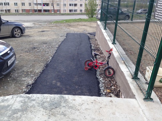 Закончили вторую очередь городка на Береговой. Поставлена песочница с домиком (песок, кстати, сертифицированный), карусель, хватило даже на асфальтирование тротуаров для подходов к городку – это особенно бросается в глаза на фотография в серии «было/стало». Всего на вторую очередь и благоустройство потратили 70 тысяч рублей.
