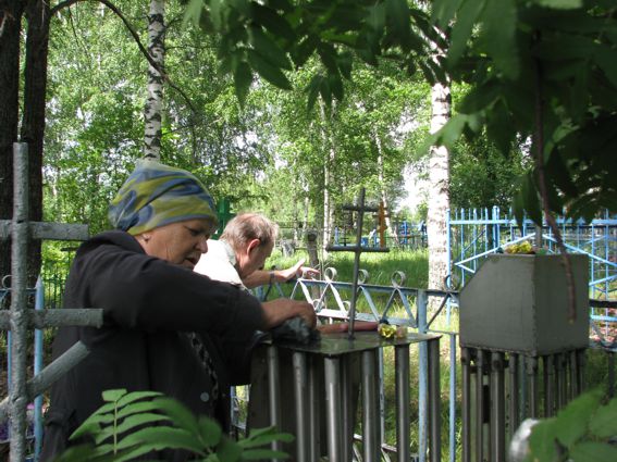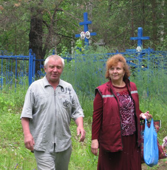 Отправились на кладбище, проведать могилы дедушки и бабушки. На снимке сестра мамы с мужем.