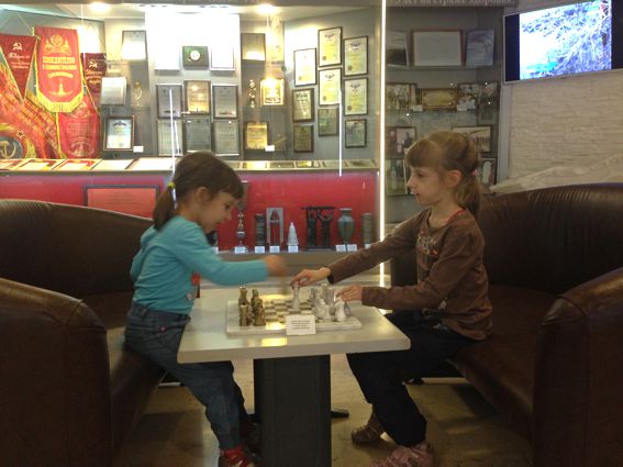 Дочки тем временем имитировали игру в шахматы)