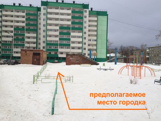 Появилась идея сдвинуть немного место установки городка в сторону нового дома. На первоначальной площадке все-таки тесновато, плюс внизу идут коммуникации - боюсь порвать их. Еще плюс: появляется возможность привлечь в проект в проект жителей двенадцатиэтажки Комсомольская 5 и пресловутой новостройки. С деньгами там очень сложно - активист истоптал там весь двор, но особого результата нет.