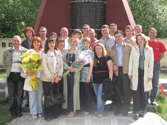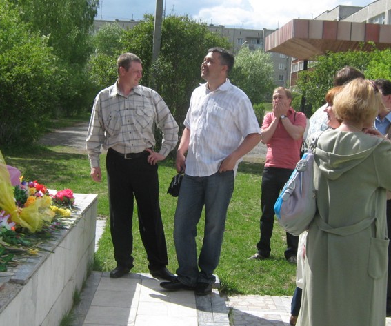 Неторопливо прошли до новой седьмой школы, куда была перенесена знаменитая стела. Игореха Мамонов и Вадик Драницин уважительно заценивают монумент. А Егор просто зевает))))
