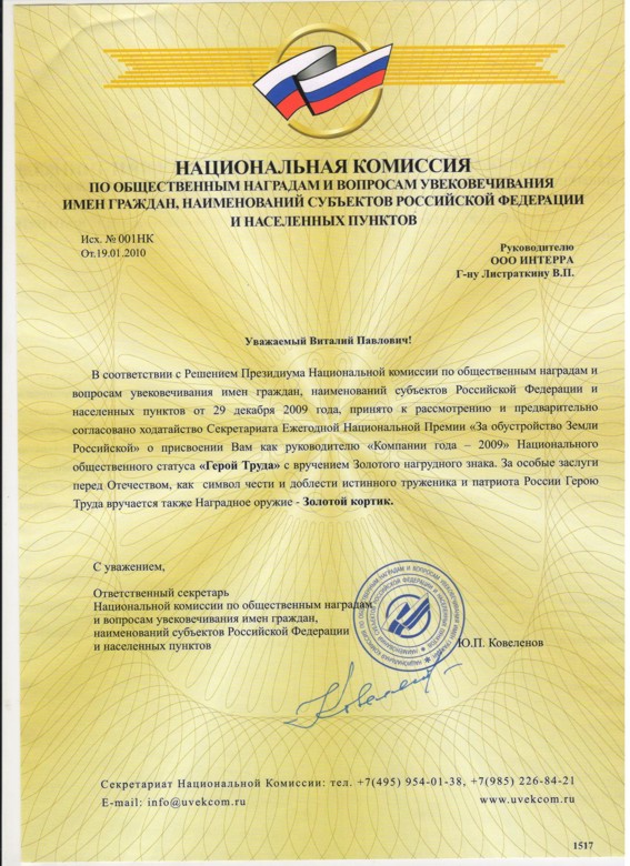 Вот и стал я официальным "героям труда") А чтобы я не сомневался, по обычной (не электронной) почте мне был прислан следующий документ: