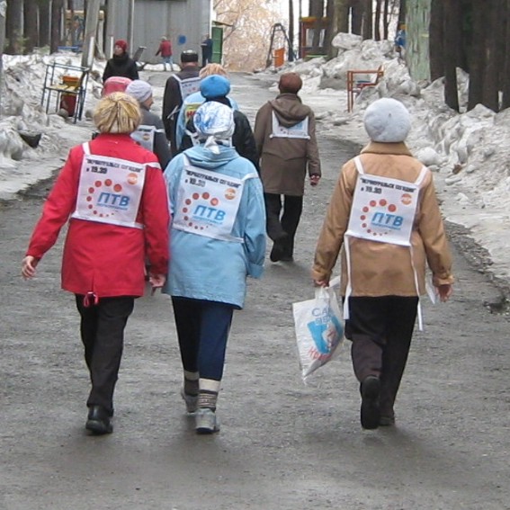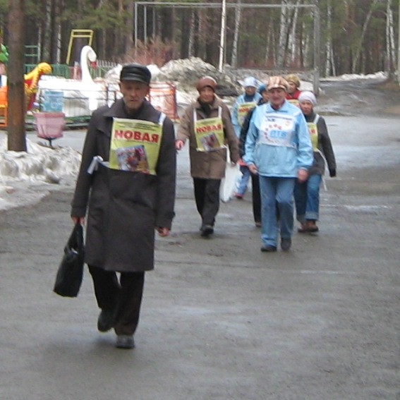 Все выходные по парку слонялась странная группа людей, увешанных логотипами газеты. Не бежали, не соревновались, просто шли, тихо, и даже как-то обреченно перебирая ногами. Возглавлял группу старик с глазами непокорённого защитника Бреста. А вообще, очень похоже на краснознамённый крестный ход.