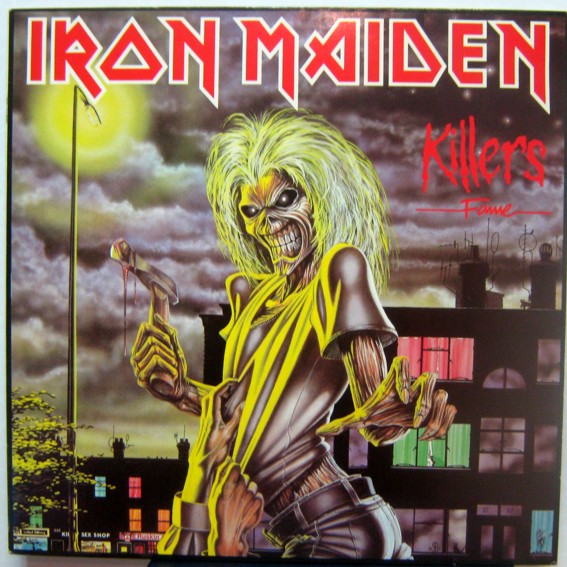 Пополнение в коллекции виниловых пластинок - "Killers" 1981 года издания от британской группы "Iron Maiden" ("Железная Дева"). Персонажа с топором зовут Эдди - это особый талисман группы, придуманный художником Дереком Дигзом. Ясен пень, что будучи неискушенным советским школьником, я пребывал в таком восторге от такой фактуры, что в школе изрисовал все парты зубастой рожей Эдди)))