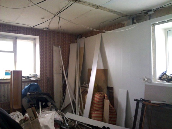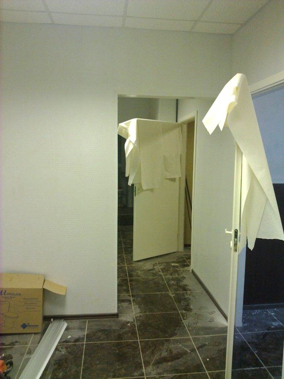 Здесь собственно, будет выход на улицу. До сих пор можно заметить следы старой обстановки.