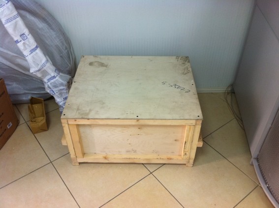 Это не ящик с боеприпасами. Это передатчик "Микротек", сделанный для на в Новосибирске. На следующей неделе он отправится в Качканар. где будет установлен и начнет вещание