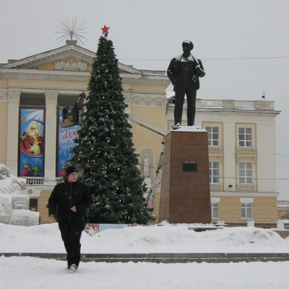 Как я уже говорил, всё в этом городе очень аккуратно и чисто. Обратите внимание: ёлка как "Шаттл" - многоразового использования, а Владимир Ильич очень смахивает на Феликса Эдмундыча.