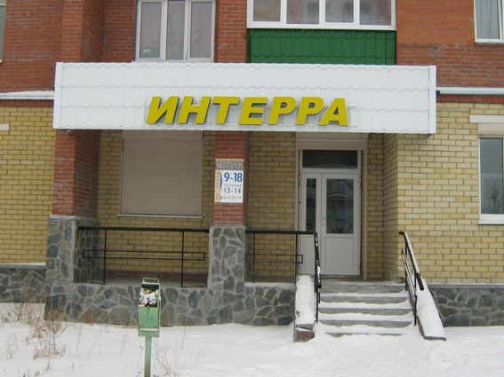 Собственно, офис. В прошлом году удалось купить это замечательное помещение в новом замечательном доме. Вывески привезли из Первоуральска и прикрутили над входом, выкинув предварительно треугольный элемент предыдущей версии логотипа.