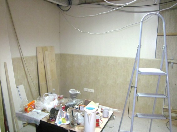 Тут будет мой кабинет. Но пока тут куча проводов и место перекуса строителей.