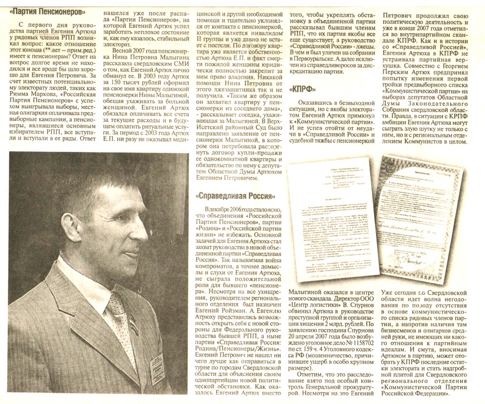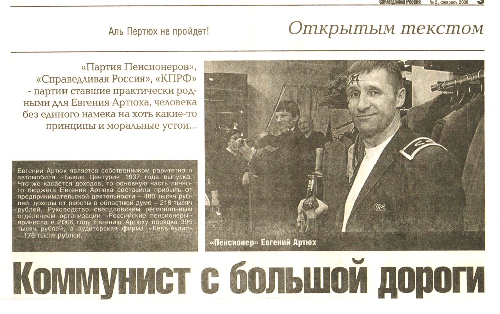 Несколько лет назад я взял за правило складывать в архивчик разного рода предвыборную раздатку. И вот, копаясь в архиве, обнаружил совершенно чудную газетку 2008 года. Называется она "Уральская правда" и редактор у неё Василий Пупкин (не шучу!). Зацените, какая дивная подача по Евгению Петровичу Артюху (ныне "единороссу").