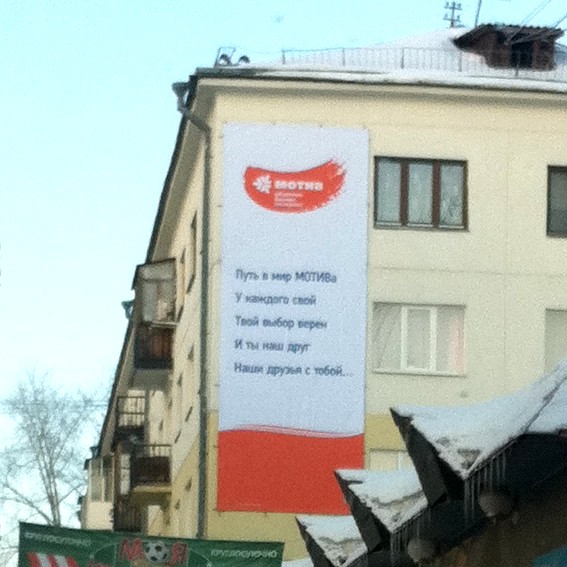 Сфоткал свежеповешенный рекламный баннер "Мотива". Своеобразная загадка на внимательность: никто ничего в нём странного не замечает?