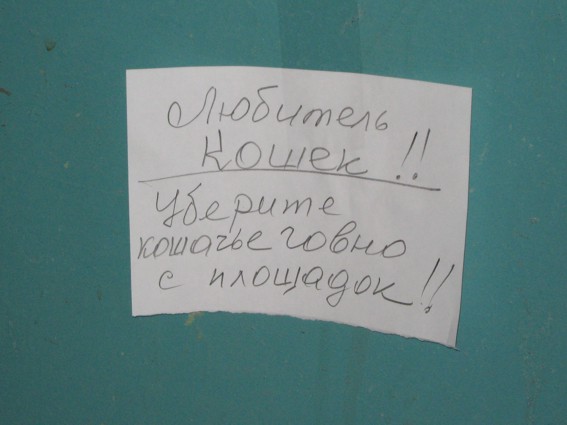 уже говорил, жители в подъезде моего дома взяли обыкновение писать друг другу записки – своеобразные смс-ки, которые они клеят на стены. По сути – это послание одного конкретного человека другому не менее конкретному человеку. Но поскольку оно висит в открытом доступе, читать могут все. И даже вы:
