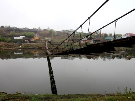 Подвесной мост. В середине, правда, не хватает досок, но местные всё равно ходят - привыкли.