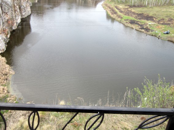 Строчка из рекламного проспекта: "Величаво несет свои воды красавица Исеть..." Но глядя с высоты вниз, я почему-то вспомнил Чапаева, как он эпически переплывал Урал. На самом деле, купаться тут чревато - у реки восьмая (она же последняя) степень загрязения. И вообще, город является неблагополучным в экологическом отношении. Основной вклад в выбросы загрязняющих веществ в атмосферу дают Красногорская ТЭЦ (44,6 %) и «УАЗ-СУАЛ» — филиал ОАО «СУАЛ» (36,3 %). Неблагополучное состояние атмосферного воздуха определяют выбросы таких загрязняющих веществ, как диоксид серы, оксид углерода, диоксид азота, бензопирен, фтористый водород и аммиак.