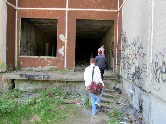 Здесь не то что бухать, стоять опасно - в любой момент с потолка может рухнуть кусок перекрытия и всё, до встречи в иной жизни.