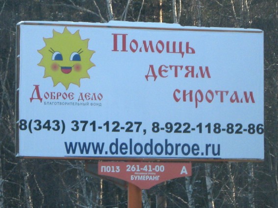 Отмечу, что наши «сироты» обложили Екатеринбург так плотно, что ежемесячно тратят на наружную рекламу сто пятьдесят- двести тысяч рублей, как приличная фабрика или завод. Неплохо, да?