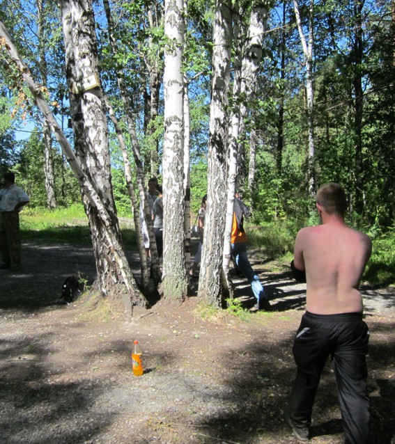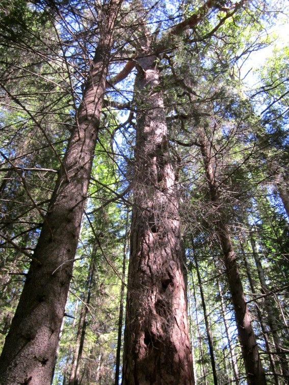 А это так называемая бортевая сосна. Видите щель в стволе дерева? Там, типа, живут дикие пчелы