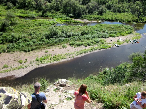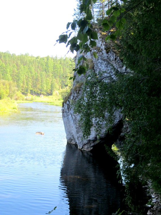 Эта скала называется Камень Дыроватый - известняковый массив с «воротами», издалека напоминает голову лошади, склонившейся к реке, очень похоже на