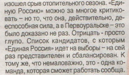 Наслаждаюсь свежим выпуском «единороссовской» газеты «Уральский Трубник», а конкретнее – статьей «Шоу точно состоится», где аффтор под псевдонимом