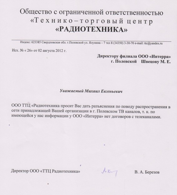 С большим опозданием до меня добралось письмо руководителя одной из кабельных сетей г.Полевского. Оного руководитель сильно беспокоит бесплатность