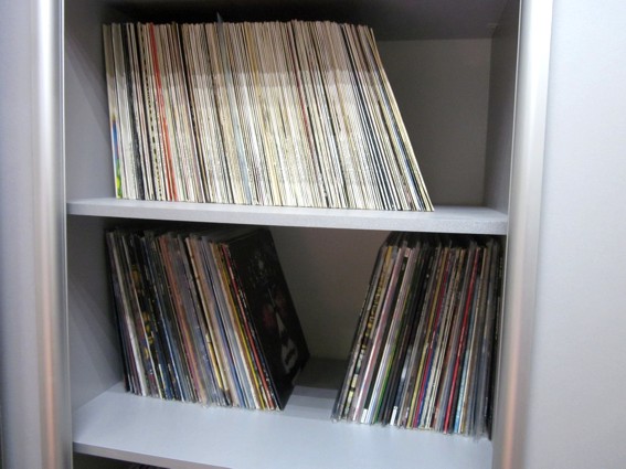 И кстати! Почти за два года моя коллекция выросла до 350 пластинок, теперь это богатство занимает две полки и выглядит вот так: