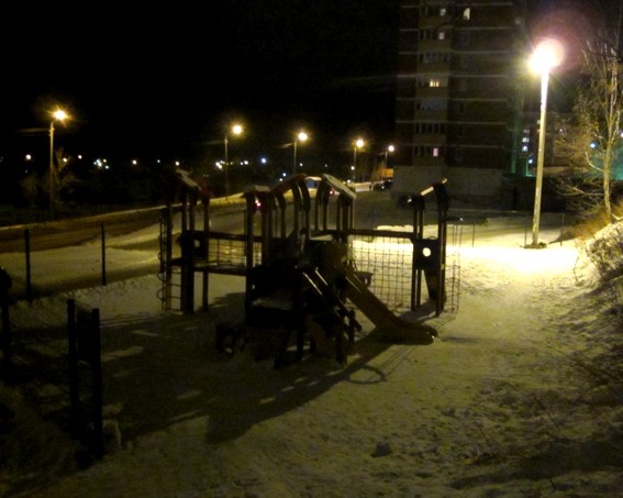 детского городка на улице Береговой. Что скрывать, городок получился шикарный! И там всегда полно ребятишек. А поскольку зимой темнеет рано, в потемках особенно не поиграешь. И поэтому я оплатил установку светильника на железобетонной опоре, и подал туда электричество с