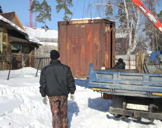 строим офис и вообще движемся вперед. Оборудования на башне тоже добавилось, и когда возникла идея сделать там антенный пост для отлова телесигнала под IPTV, решили к основанию башни поставить контейнер для оборудования. Контейнер был найден в городе Полевской и привезен сюда на грузовике.