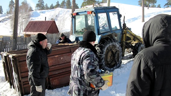 Для транспортировки контейнера наверх был откамандирован трактор "Беларусь".
