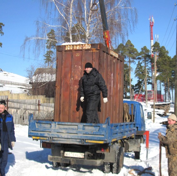 строим офис и вообще движемся вперед. Оборудования на башне тоже добавилось, и когда возникла идея сделать там антенный пост для отлова телесигнала под IPTV, решили к основанию башни поставить контейнер для оборудования. Контейнер был найден в городе Полевской и привезен сюда на грузовике.
