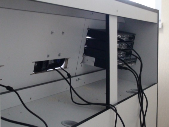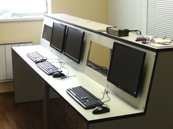 В отдельном помещении расположен аппаратный комплекс студии - почти ЦУП. Это специальный стол в котором будут размещаться все приборы аппаратной съемок и вещания.